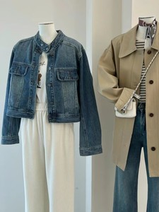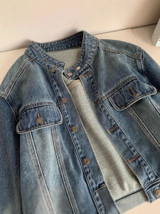2025年春季新款港味复古做旧短款牛仔外套女宽松显瘦立领夹克上衣