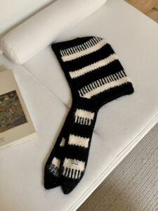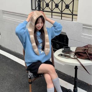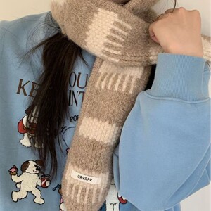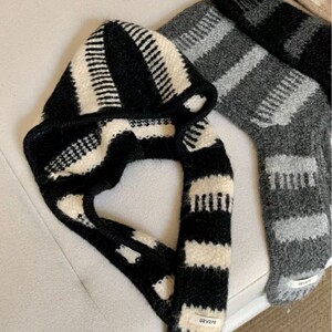 可爱兔耳朵针织毛线帽女秋冬韩系氛围感黑白条纹保暖围脖一体帽子