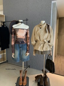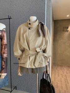 WGWE7045#广州十三行女装2025秋装新款风衣外套绑带收腰夹克上衣