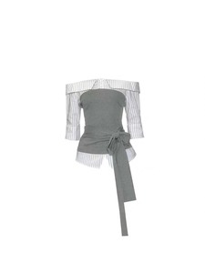 韩系套装女夏季气质纯欲一字肩假两件条纹拼接衬衫搭配高腰半身裙