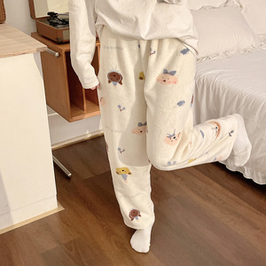 珊瑚绒睡裤女长裤秋冬暖暖裤法兰绒裤子居家加厚加绒女冬季家居裤
