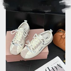银色内增高平底德训鞋女鞋子2025新款秋夏季休闲运动板鞋阿甘鞋子
