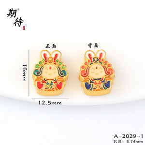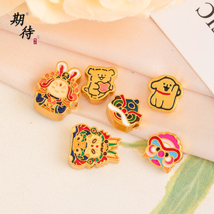 强保色沙金diy配件珐琅彩线条小狗通孔精致百搭爱心小狗沙金配件