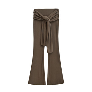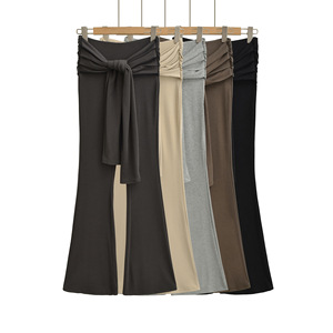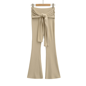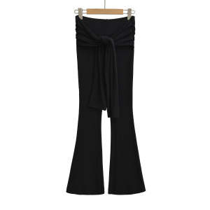 假两件褶皱系带喇叭长裤女2025秋季款美式辣妹运动显瘦休闲拖地裤