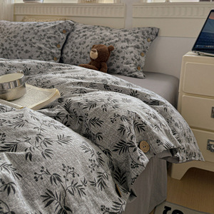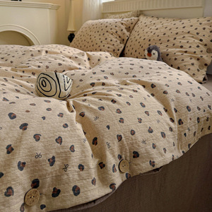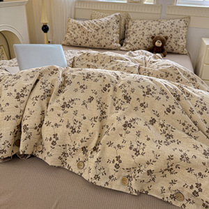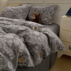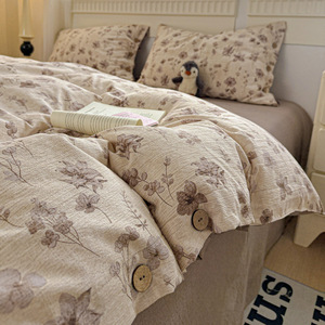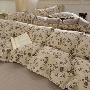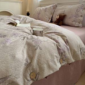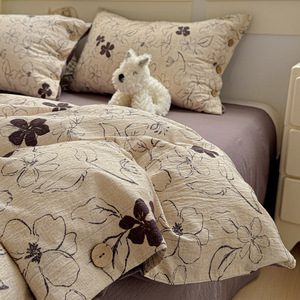 原麻复古印花床上四件套秋冬单被罩磨毛南通家纺用品4三件套