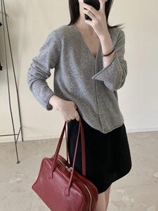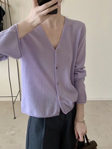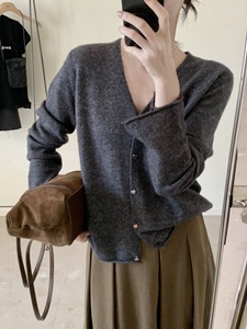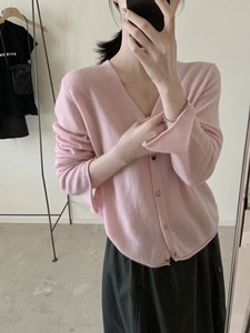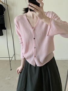 【之言】25秋季韩系轻薄V领高级感纯色爱心扣休闲羊驼绒针织开衫