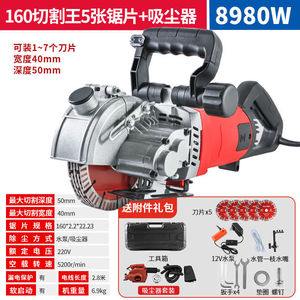 【160切割王激光款】9980W开槽深5公分~5锯片+吸尘器D