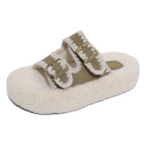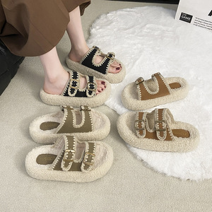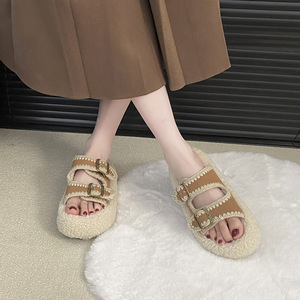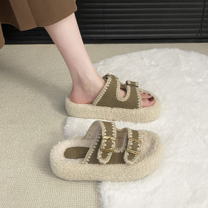 厚底勃肯毛毛拖鞋女外穿2025新款秋冬季复古毛茸茸外出居家棉拖鞋