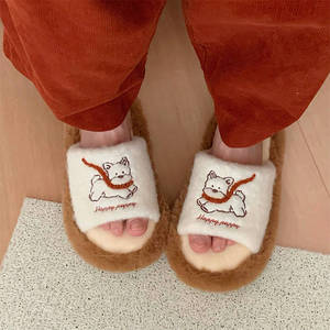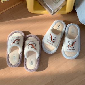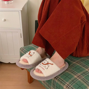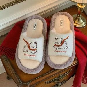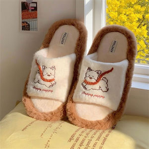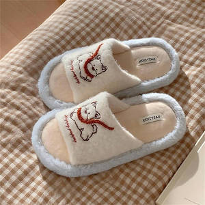ins家用保暖卧室西高地小狗毛毛拖鞋秋冬休闲网红可爱棉拖鞋女士