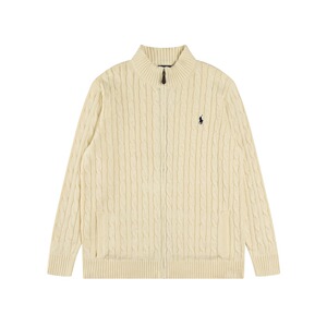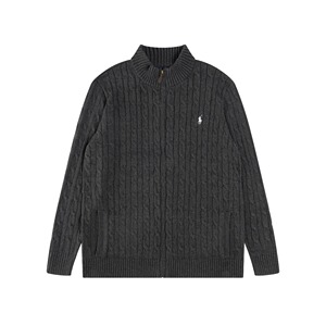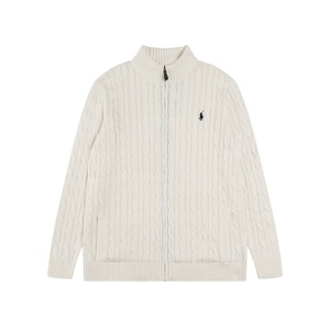 RALPH LAUREN 拉夫劳伦经典小标刺绣 logo 全拉链针织绞花开衫毛