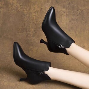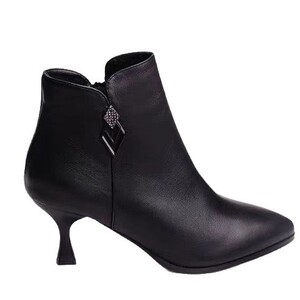 细跟高跟鞋女软皮短靴2025冬季新款尖头时尚加绒皮鞋百搭一件代发
