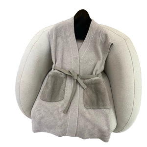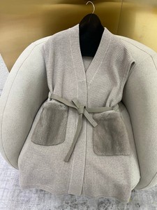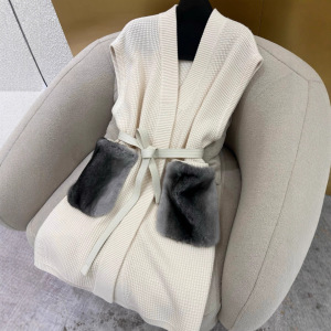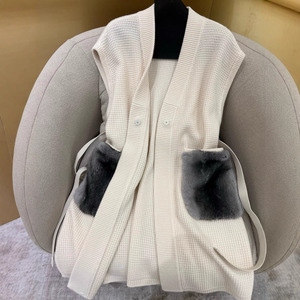 2025秋季新款 时尚简约V领双口袋无袖配腰带纯色针织马甲外套大衣