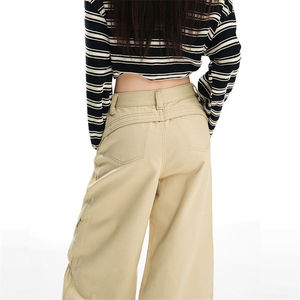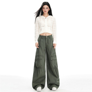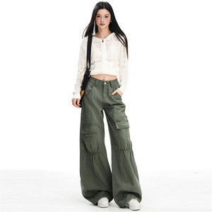 美式复古工装裤女辣妹宽松阔腿牛仔裤秋冬褶皱分割设计感休闲裤子