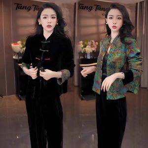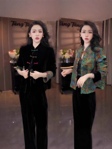 新中式气质盘扣丝绒双面穿外套女2025秋新款名媛百搭休闲高级上衣