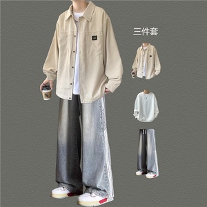 港风复古灯芯绒衬衫男生春秋季2025新款套装痞帅宽松外穿衬衣外套