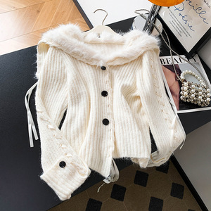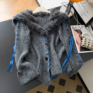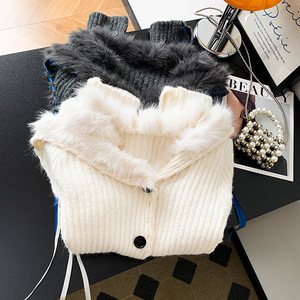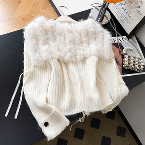 实拍2025秋冬新款毛皮草外套海军领车条针织毛衣韩版短款时尚