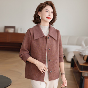 2025年新款中老年洋气仿双面呢开衫夹克秋冬妈妈装女上衣针织外套