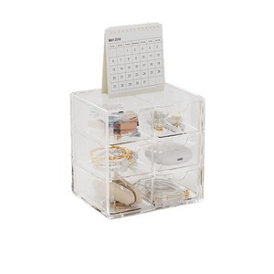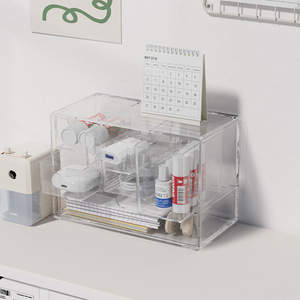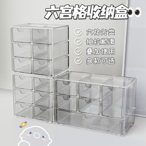 桌面六宫格收纳盒透明抽屉式分格学生宿舍桌可叠加式文具卡片整理