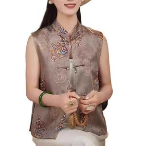 新中式双面穿马甲女批发秋季立领国风背心气质坎肩轻奢贵气马夹女