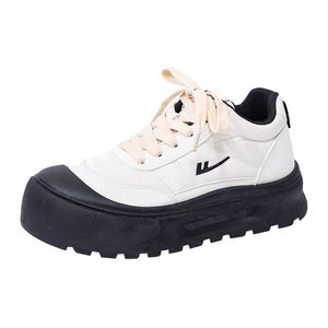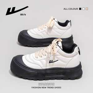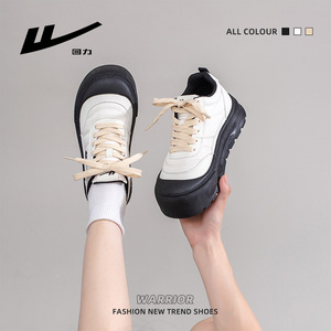 回力学院风高帮系带厚底鞋百搭黑白拼色运动鞋高颜值简约大头鞋女