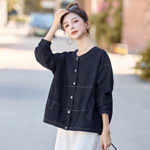 港风复古休闲圆领牛仔短外套女2025秋季新款宽松显瘦百搭夹克上衣