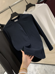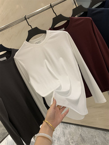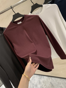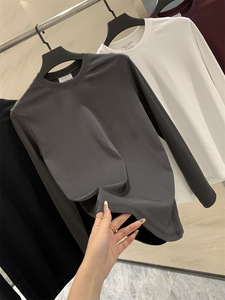 港单百搭 吸汗透气!高克重秋季男士纯色休闲圆领打底长袖T恤