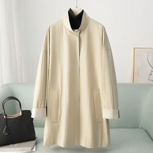 少量服饰2025海宁新款立领风衣外套女春秋宽松休闲慵懒风长款大衣