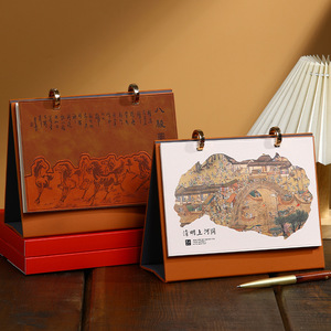 2026皮架台历定制马年高档月历企业商务送礼简约国风桌面摆件专版