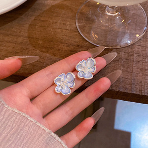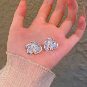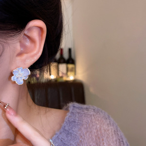 微镶锆石紫色花朵耳环女轻奢高级感个性立体耳钉2025新款耳饰批发