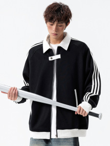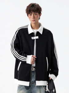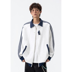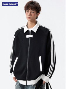 NASA美式条纹运动夹克男女款秋季潮牌学院风情侣休闲外套立领卫衣