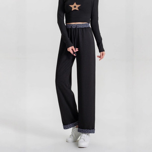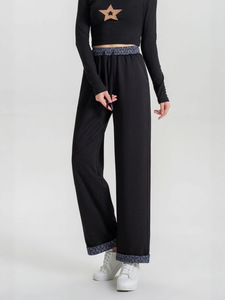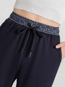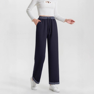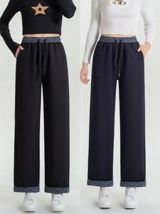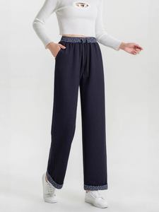 2025秋冬新款时尚百搭显瘦休闲裤设计感抽绳松紧腰仿牛仔直筒裤女