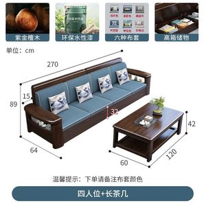 檬榆紫金檀木实木沙发小户型出租屋全套客厅新款家用多功能小沙发