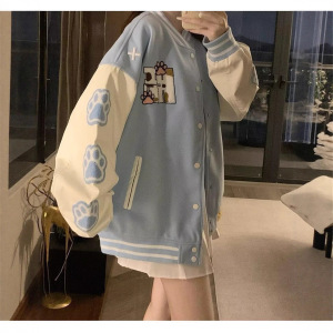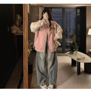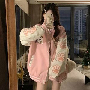美式潮牌刺绣猫爪宽松棒球服外套女春季2025年新款撞色学院风夹克