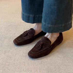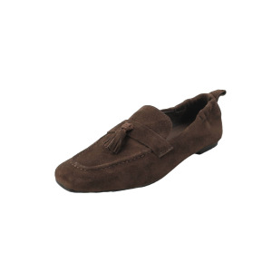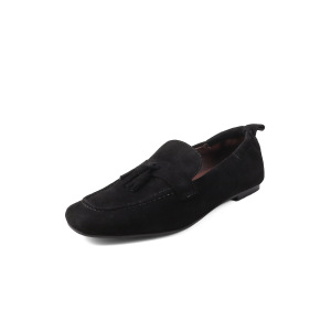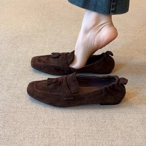 打版中复古小众设计感纯色平跟女鞋方头真皮百搭奶奶鞋流苏女单鞋