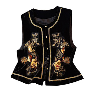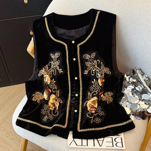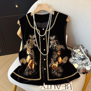 新款新中式国风重工亮片钉珠丝绒马甲女秋季新款气质马夹上衣