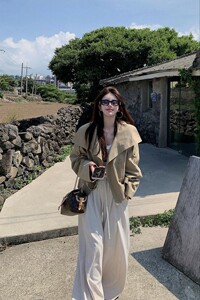 英伦风设计感立领短款风衣外套经典双排扣秋季时髦上衣146