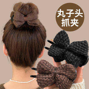 秋冬针织蝴蝶结丸子头的抓夹夹子头饰发夹女后脑勺盘发神器鲨鱼夹