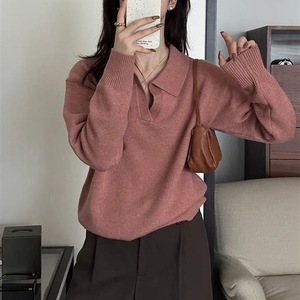 软糯polo翻领毛衣女内搭秋冬复古港味慵懒风上衣休闲针织打底衫女