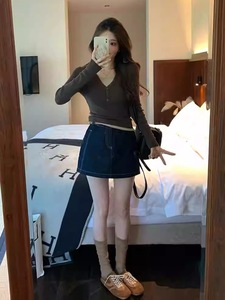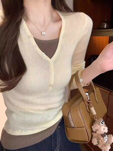 美拉德~ 法式假两件拼接针织衫女春季修身显瘦气质内搭上衣