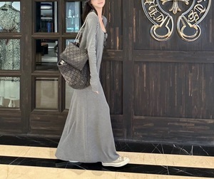 5werkwe 松弛美女 羊毛针织开衫吊带长裙套组