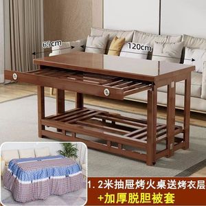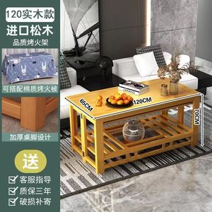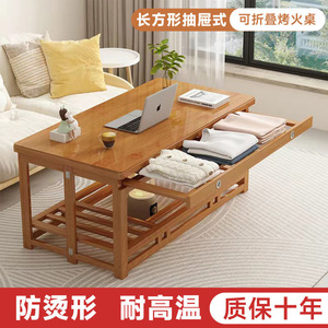 楠竹长方形烤火桌可折叠取暖桌全套一整套家用方桌烤火架暖桌子
