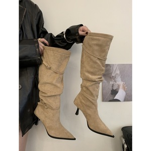 2025新款秋冬法式长筒靴女细高跟鞋冬季配大衣高筒长靴美拉德靴子
