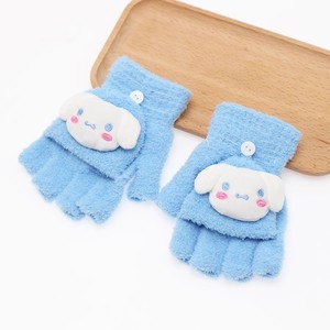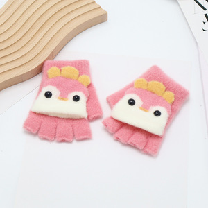 儿童翻盖手套冬季加厚卡通中大童保暖半指手套写字玩沙男孩女童