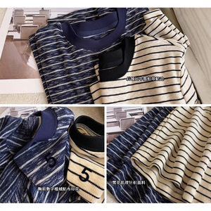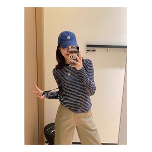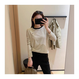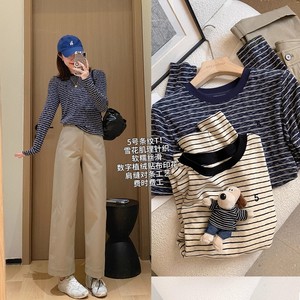 LK96 5号条纹T!雪花肌理植绒贴布撞色长袖T恤早秋软糯轻薄上衣