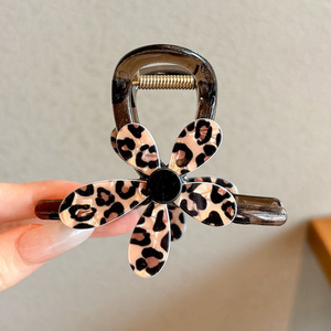 1#中号【透棕底夹】豹纹花朵抓-8cm