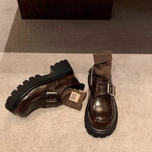 葡萄妈同款 学院风方扣懒人一脚蹬松糕粗跟厚底乐福小皮鞋女真皮