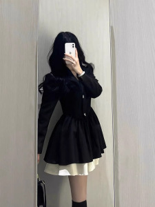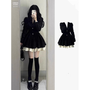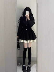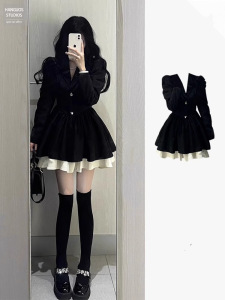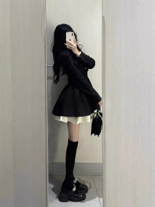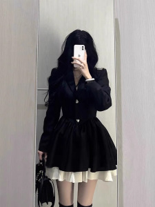 小香风西装连衣裙小个子高级感气质收腰公主蓬蓬裙约会穿搭小黑裙
