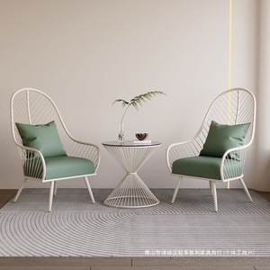 奶油风户外阳台休闲桌椅沙发椅简约单人茶几一桌庭院三件套组合