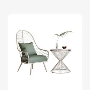 芭蕉椅+漏斗款边几 三件套+绿色坐垫