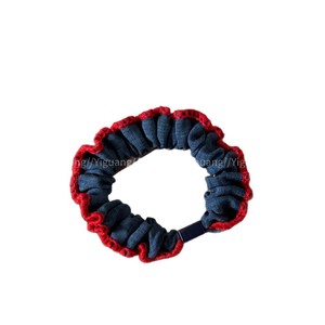 时尚百搭红蓝格纹花边牛仔蓝发圈少女甜酷发绳扎发皮筋高马尾头饰